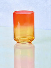 Modern glass wine decanter with yellow spout, wine pouring, clear minimalist background