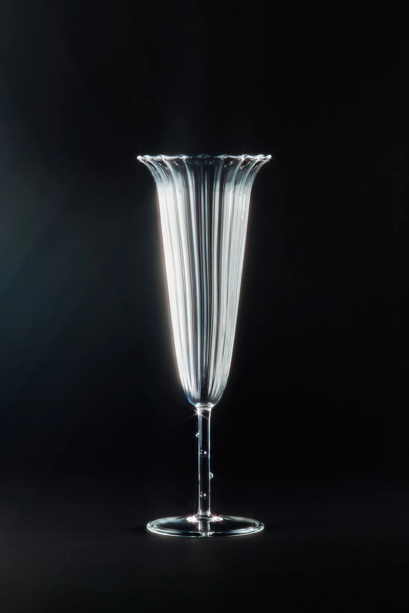 A petite champagne flute, the delicate shape of the cup recalls an Angel Trumpet flower, adding a little touch of magic to an already special drink. Sold as a set of 4.
