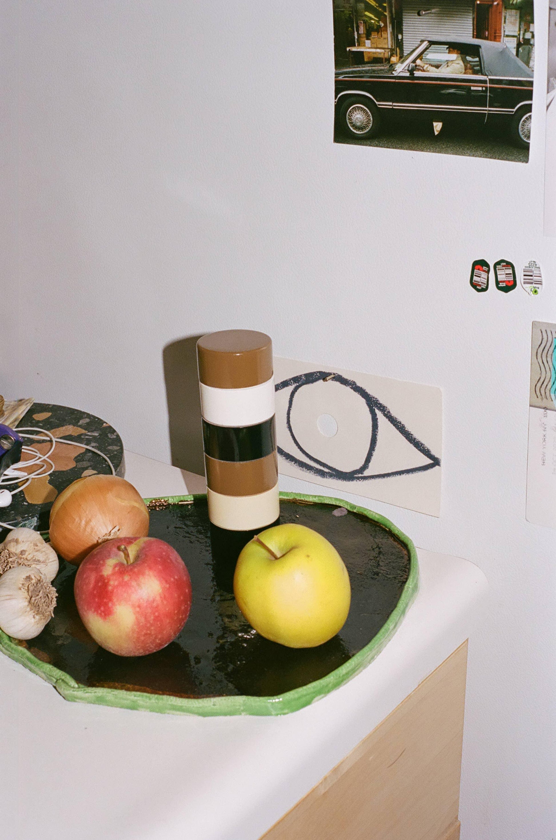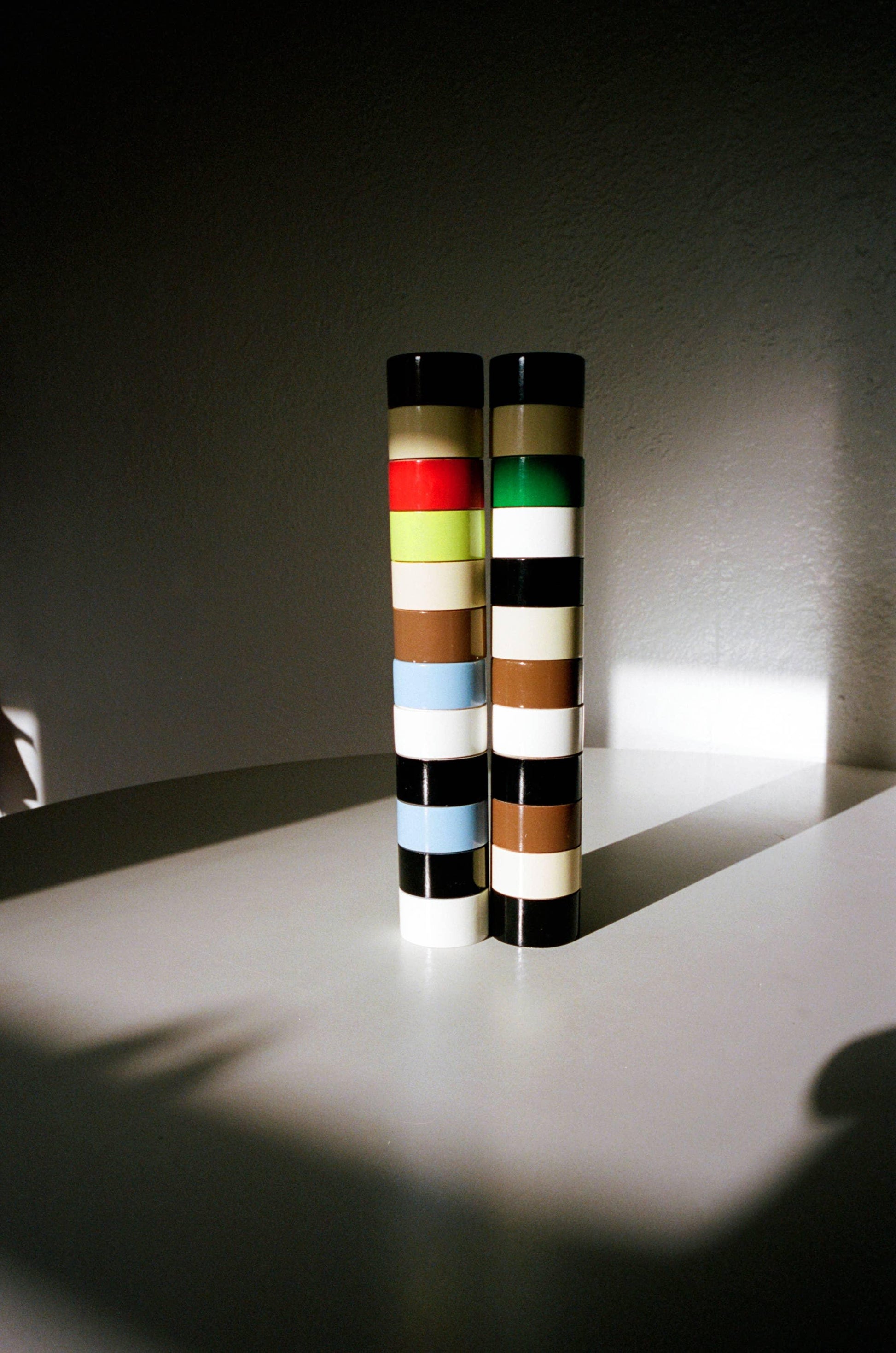 The Dimes peppermill reflects its namesake's subtle vibrance and thoughtful simplicity. The form is inspired by artist Andre Cadere’s notorious wooden sticks casually left in unsuspecting galleries. Each peppermill is made from turned solid wood, individually hand-painted and finished in a high gloss lacquer. materials: wood, paint, lacquer, steel. dimensions: 155x50mm
