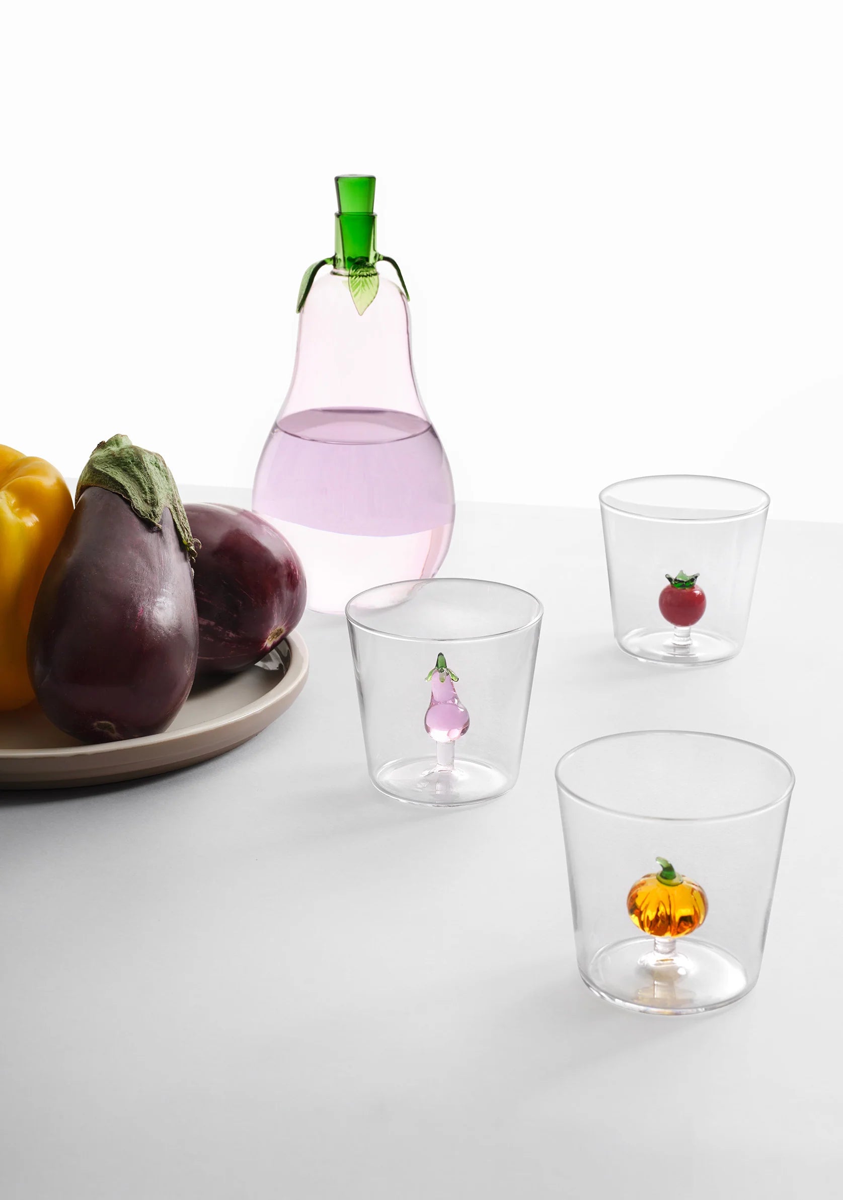 Meet our Eggplant Bottle: perfect for infusing your kitchen with intrigue while serving as a drink carafe or storing your favorite cooking oil. From Italy to your table, this handcrafted bottle is made from borosilicate glass and mimics the soft, purple hue of an eggplant. Topped with a vibrant green stem lid when not in use, you can place it on a shelf or countertop for a unique touch that is sure to catch the eye of fellow culinary enthusiasts.