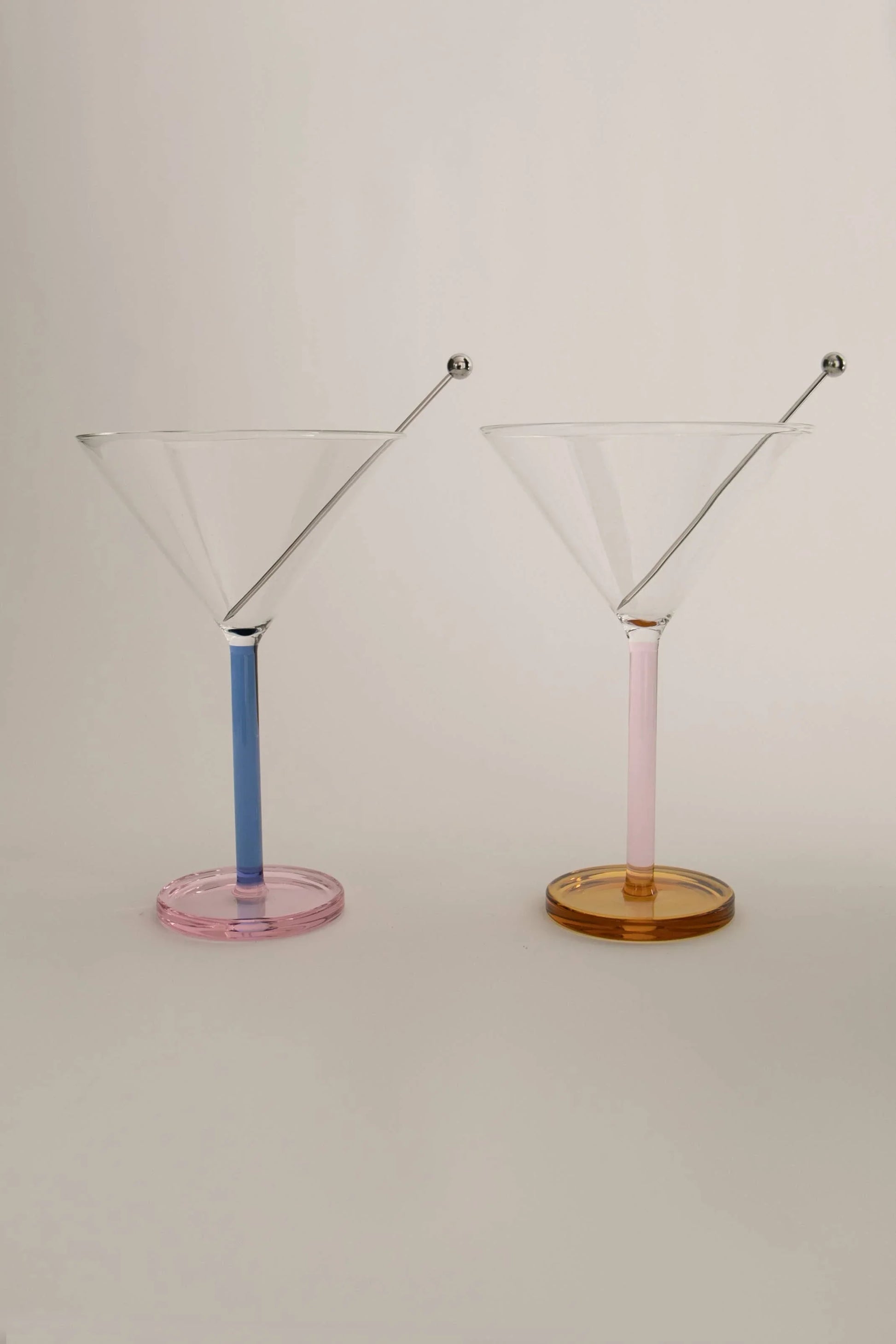 Relive the golden age of New York jazz clubs with these modern and stylish Piano Cocktail Glasses. Perfectly mismatched pairs come with complimentary colors and two stainless steel garnish skewers for a jazzed-up drinking experience.