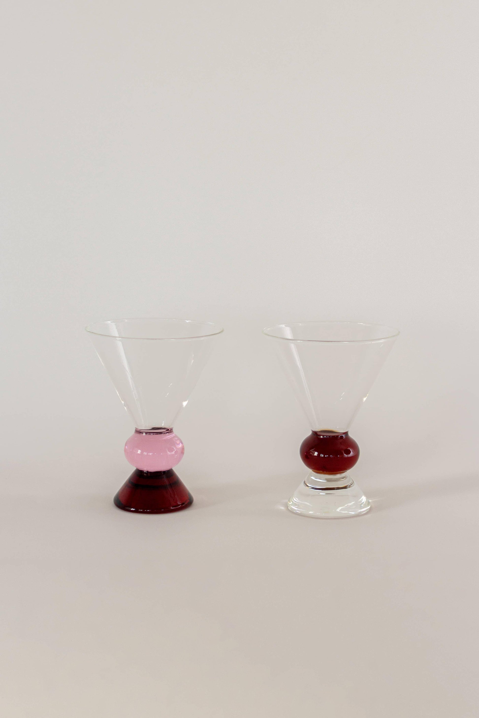 A collaboration with non-alcoholic aperitif brand, GHIA. Inspired by the colorful totem poles of postmodern design, the solid base and proportions of these stemless cocktail glasses were designed with special consideration for longer drinks — spritzes, mixers, even sodas! — but still work beautifully with any classic cocktail.