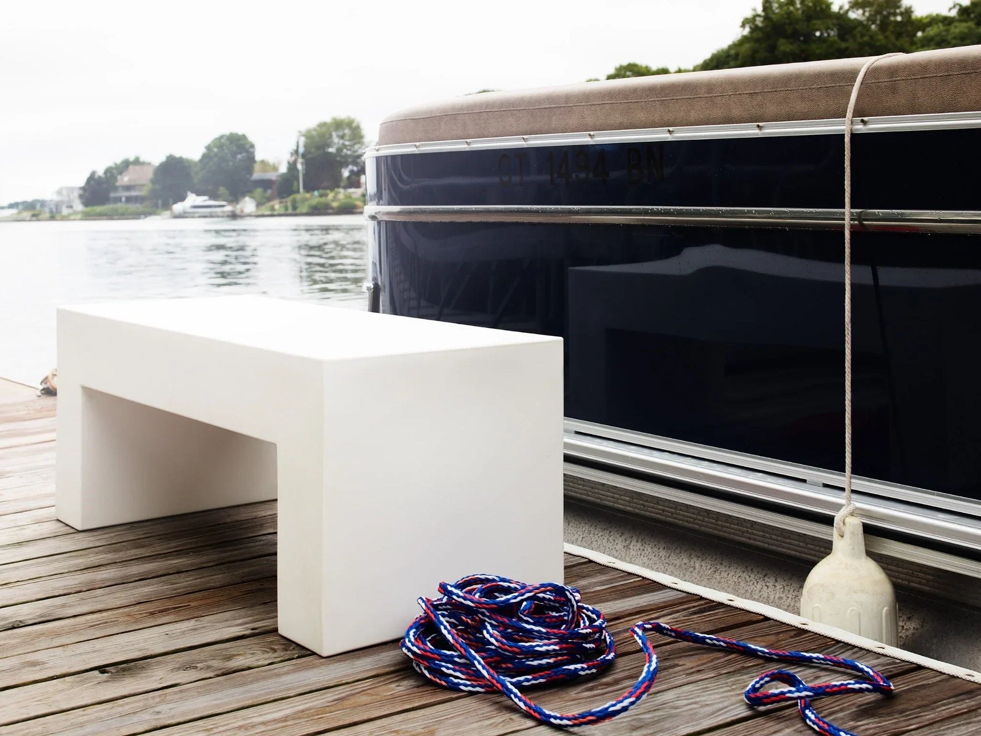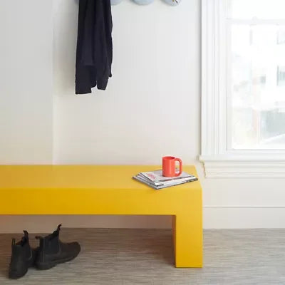 Available in three sizes and a range of colors, the indoor-outdoor Vignelli Bench is equally at home next to a pool, in an entryway or hotel lobby, on a tennis or pickleball court, or at a dining table.