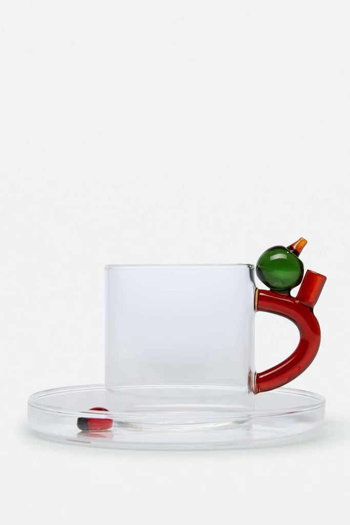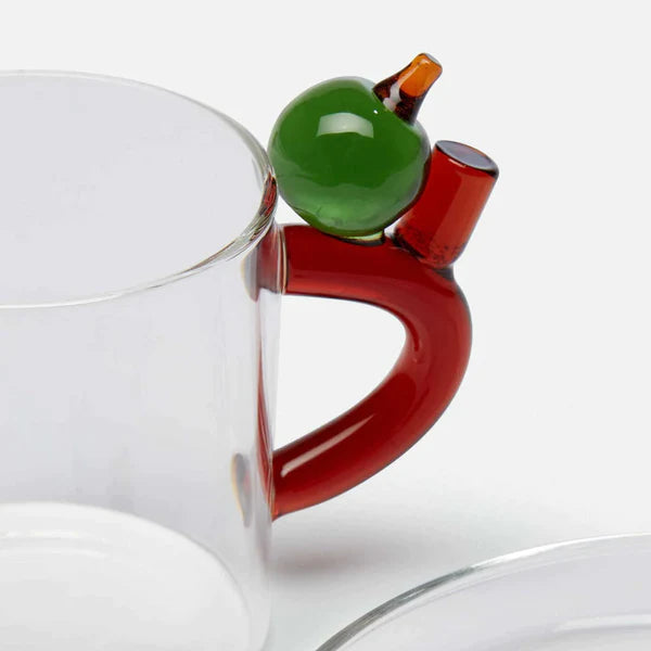 Introduce a dash of natures charm to your dining table with our delightful Ladybug Apple Teacup. Crafted by the ingenious mind of Allesandra Baldereschi, this intricately handmade clear glass teacup redefines elegance with a playful and whimsical twist. The accompanying saucer, adorned with a dainty yellow ladybug, adds an extra layer of enchantment to elevate your table setting.