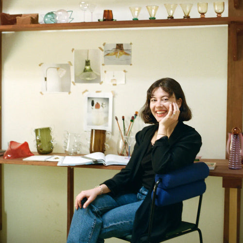 Sophie Lou Jacobsen is a French-American designer currently based in New York City. She established her studio in 2019, with an initial focus on objects of everyday use, mostly using glass as a medium and exploring the interaction between object and user. Her work stems from the idea that objects have an innate power to enhance their user's mood through form and function. She focuses on simple objects and rituals, to see how she can alter these in ways that are surprising, delightful, and elevate the user experience. She believes that the objects which we surround ourselves with can and should be imbued with a certain poetry, creating a relationship between humans and objects built on mutual respect.
