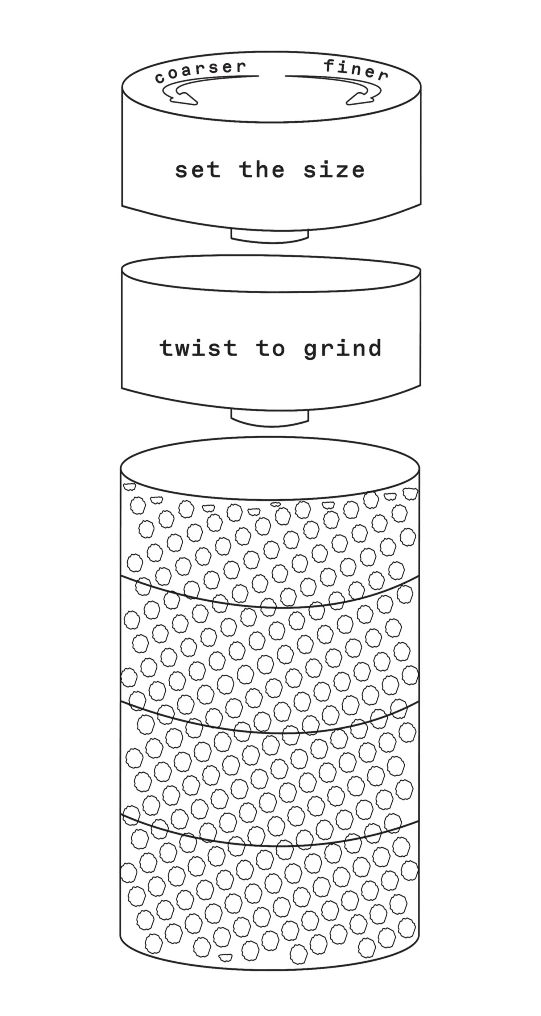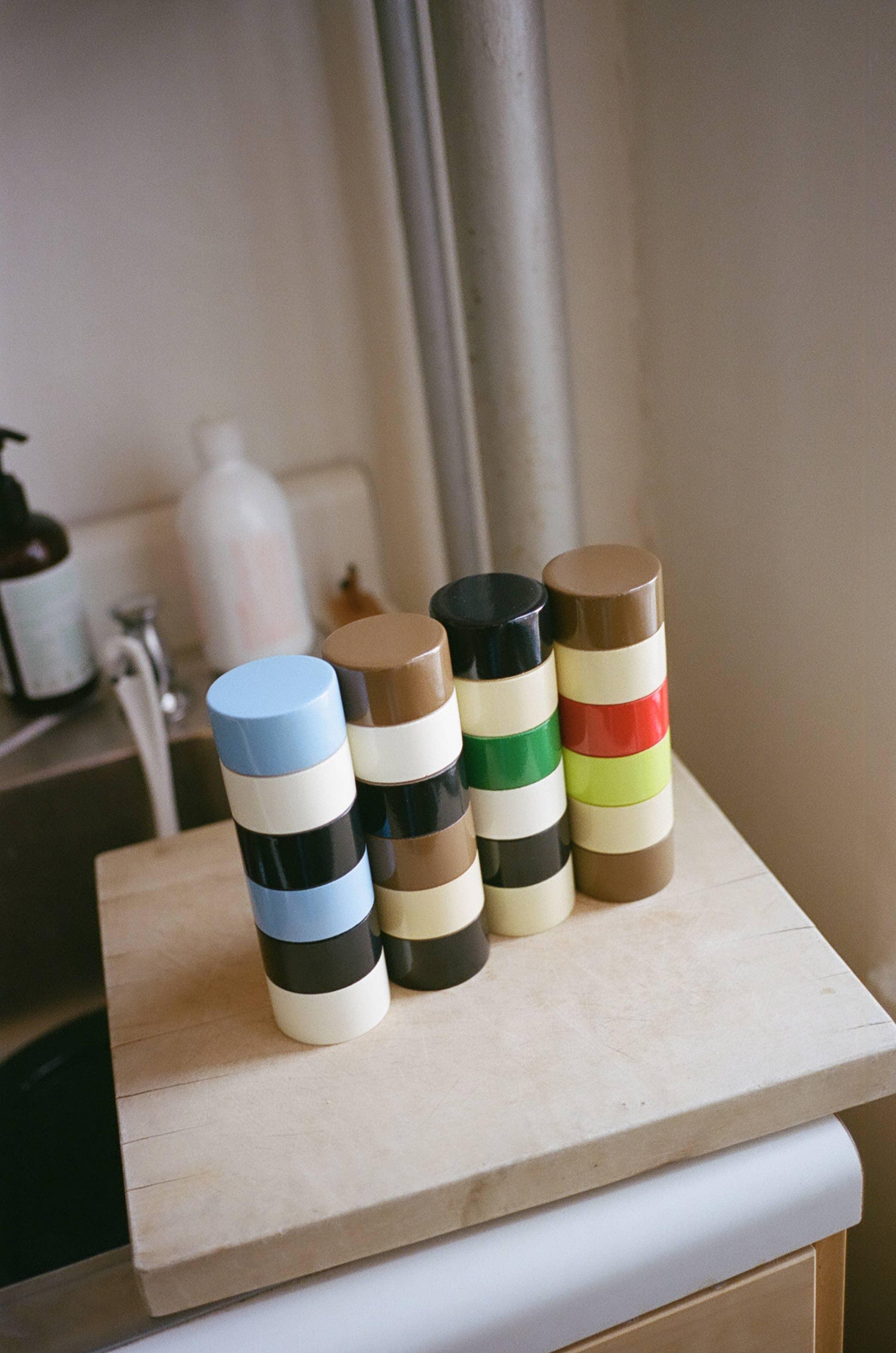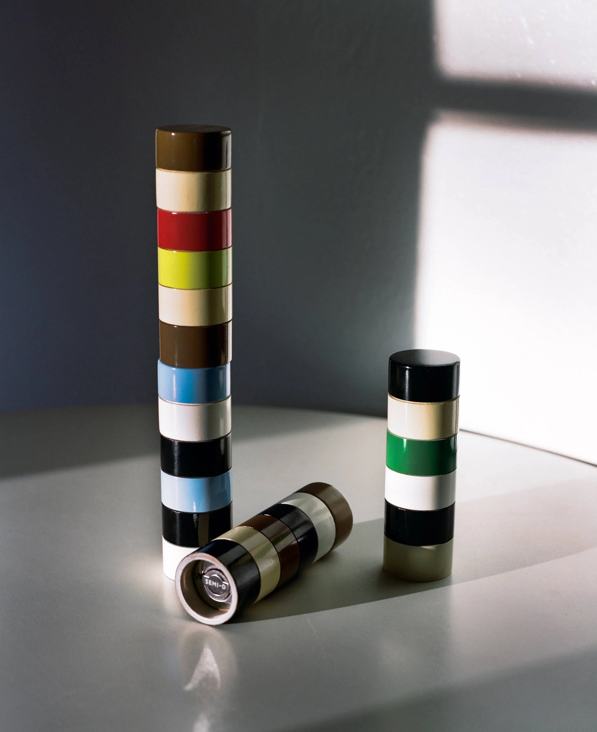 The Dimes peppermill reflects its namesake's subtle vibrance and thoughtful simplicity. The form is inspired by artist Andre Cadere’s notorious wooden sticks casually left in unsuspecting galleries. Each peppermill is made from turned solid wood, individually hand-painted and finished in a high gloss lacquer. materials: wood, paint, lacquer, steel. dimensions: 155x50mm