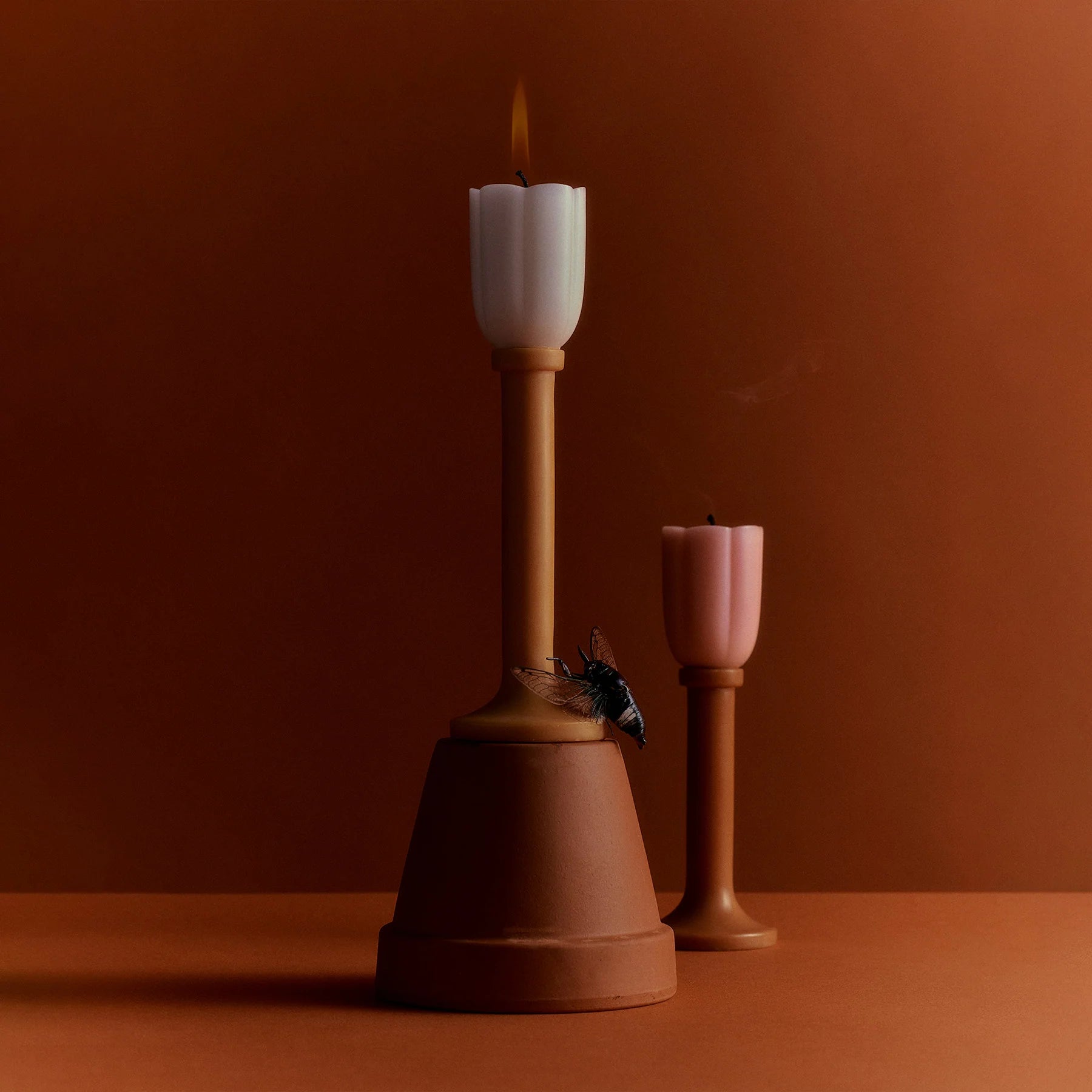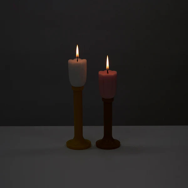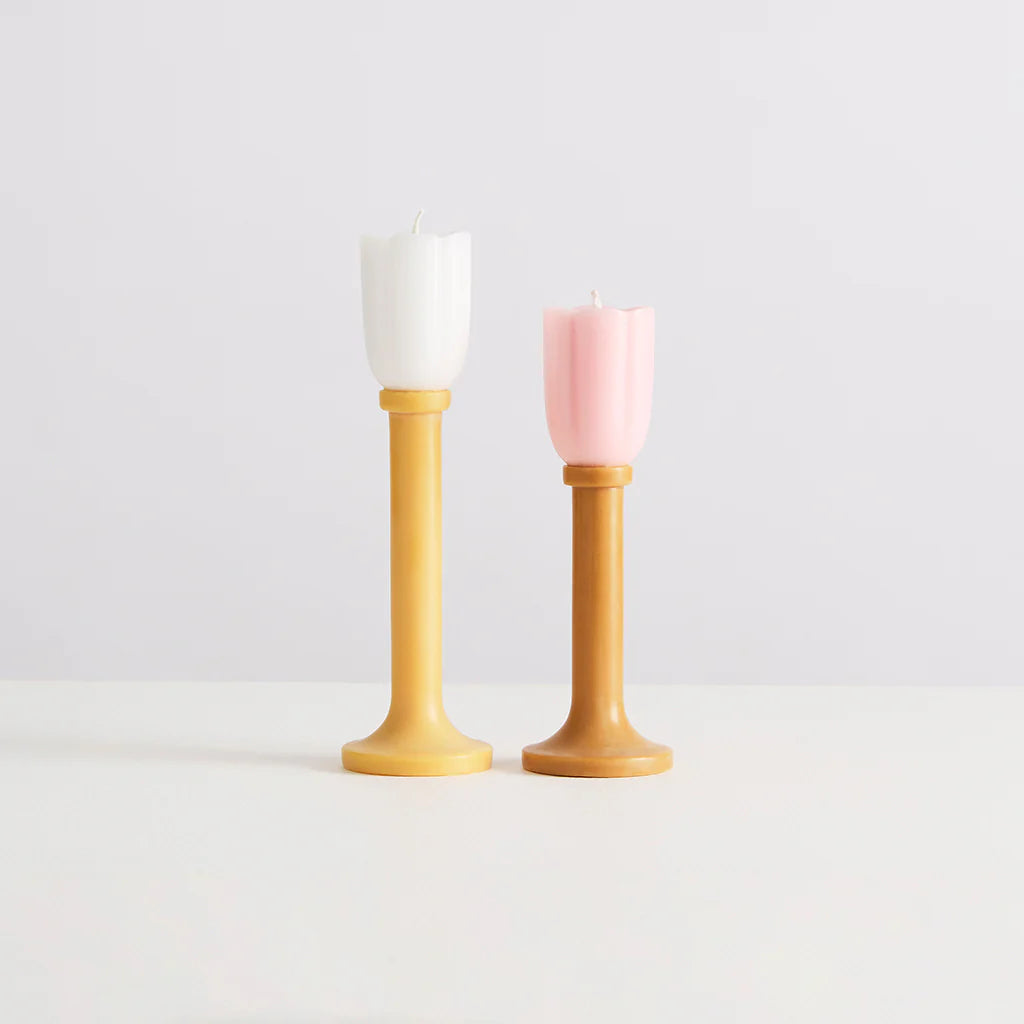 Bring a playful touch to your home decor with Les Tulipes candle set. Each elegant candle is shaped like a tulip, one in a delicate white and the other in a soft pink, standing gracefully atop a slim, earth-toned base. Perfect for adding charm to your dining table or mantelpiece, these candles effortlessly blend whimsy with sophistication. Create a warm and inviting atmosphere in your home with these delightful candles.